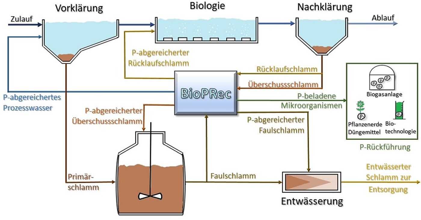 Bei dem BioPRec-Verfahren kommen Mikroorganismen zum Einsatz, um den Phosphor selektiv aus dem Klärschlamm zu entfernen. Die Organismen nehmen den Phosphor aus der Flüssigphase auf und stehen im Anschluss für weitere (industrielle und landwirtschaftliche) Verwertungsmöglichkeiten zur Verfügung.